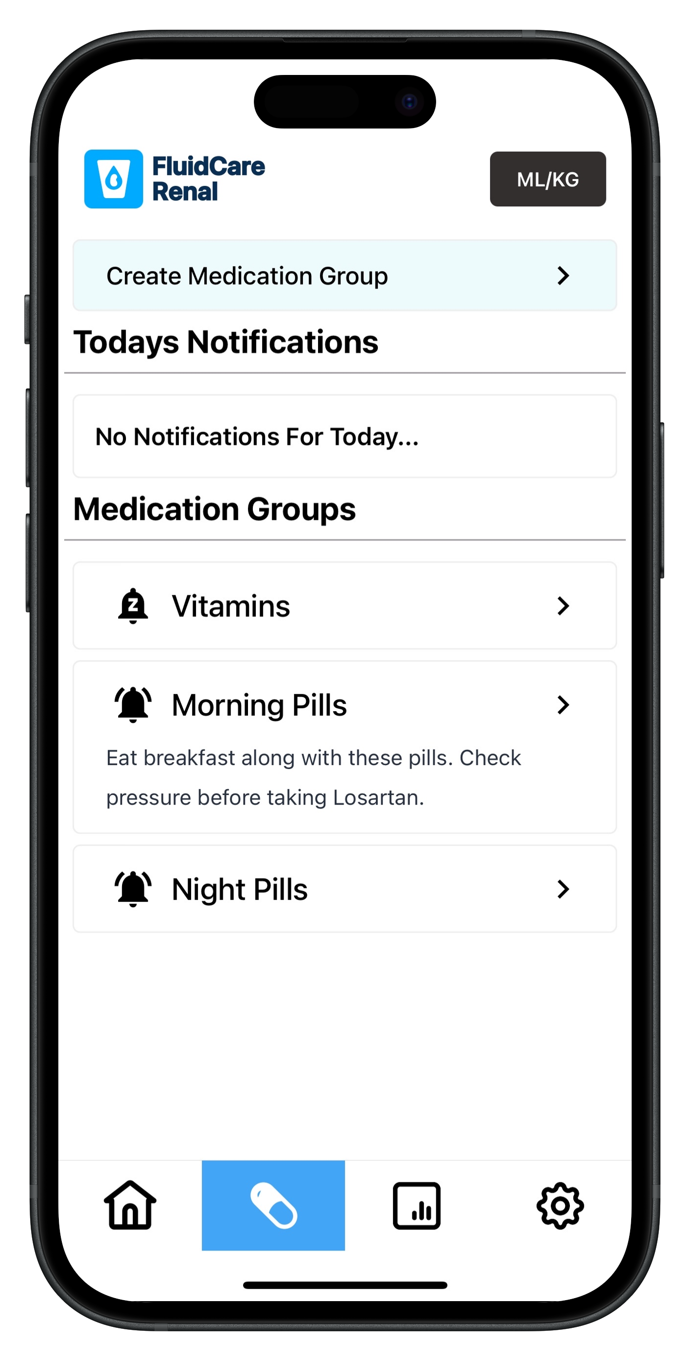 Organize all your medications into groups, add dosages and notes, set schedules, and get reminders when refills are due.